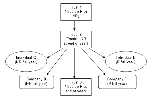 The following example of a chain of trusts demonstrates the taxation of trust net income for non-resident beneficiaries.