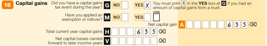 As she has no other CGT event and does not have any capital losses, Fatima completes item 18 on her tax return (supplementary section) as follows: