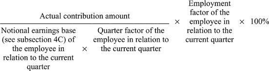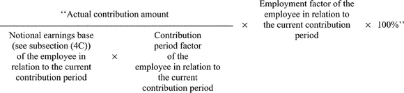 If, in a quarter, an employer makes a contribution (other than a sacrificed contribution) for the benefit of an employee to a complying superannuation fund or an RSA, then the charge percentage for the employer (as specified in subsection 19(2) ) for the employee for the quarter is reduced by the number worked out using the formula: