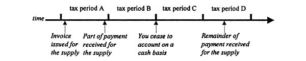 Under section 29-5 , the supply was to some extent attributable to tax period A, but it would have been attributable only to that tax period if you had not been accounting on a cash basis. Therefore the supply is attributable to tax period C (the transition tax period), but only to the extent that it is not attributable to tax period A.