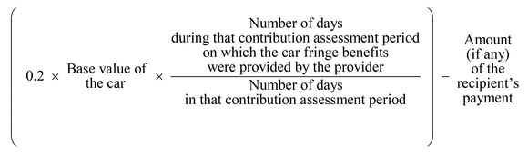 Subject to this Part, where one or more car fringe benefits in relation to an employer in relation to a contribution assessment period relate to a particular car held by a particular person (the provider ), the taxable value of that fringe benefit, or the aggregate of the taxable values of those fringe benefits, as the case may be, in relation to that contribution assessment period, is the amount calculated in accordance with the formula:![]()